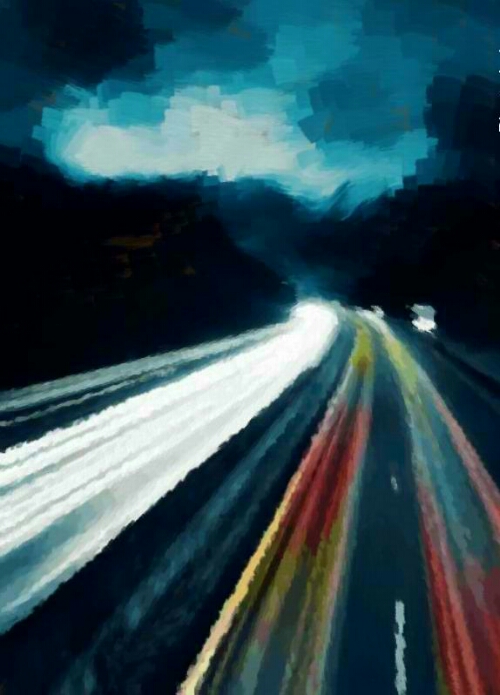 mă orbesc luminile maşinilor. îmi înţeapă ochii adânc, trasând şanturi ireversibile pe retină. un du-te-vino ameţitor mă joacă pe degete şi îmi distruge echilibrul. mă înclin instinctiv spre dreapta, de frica valului alb din stânga. să nu cumva să mă prindă de mână, să mă tragă spre nu-ştiu-unde. pe dreapta, un râu sângeriu se tot duce spre departe. cu picioarele proptite în pământ mă ancorez în banda dublă albă care desparte şoseaua în două. îmi desprind gândurile de corp şi le dau drumul să alerge în ambele direcţii simultan. îmi asum un risc calculat. dacă mă gândesc bine, găsesc o oarecare plăcere în saltul nebun pe care mă pregătesc să-l fac. ca şi cum săritul gândului cu prăjina ar fi un sport naţional la care sunt campioană. îndoi uşor genunchi, inspir, expir şi… salt!